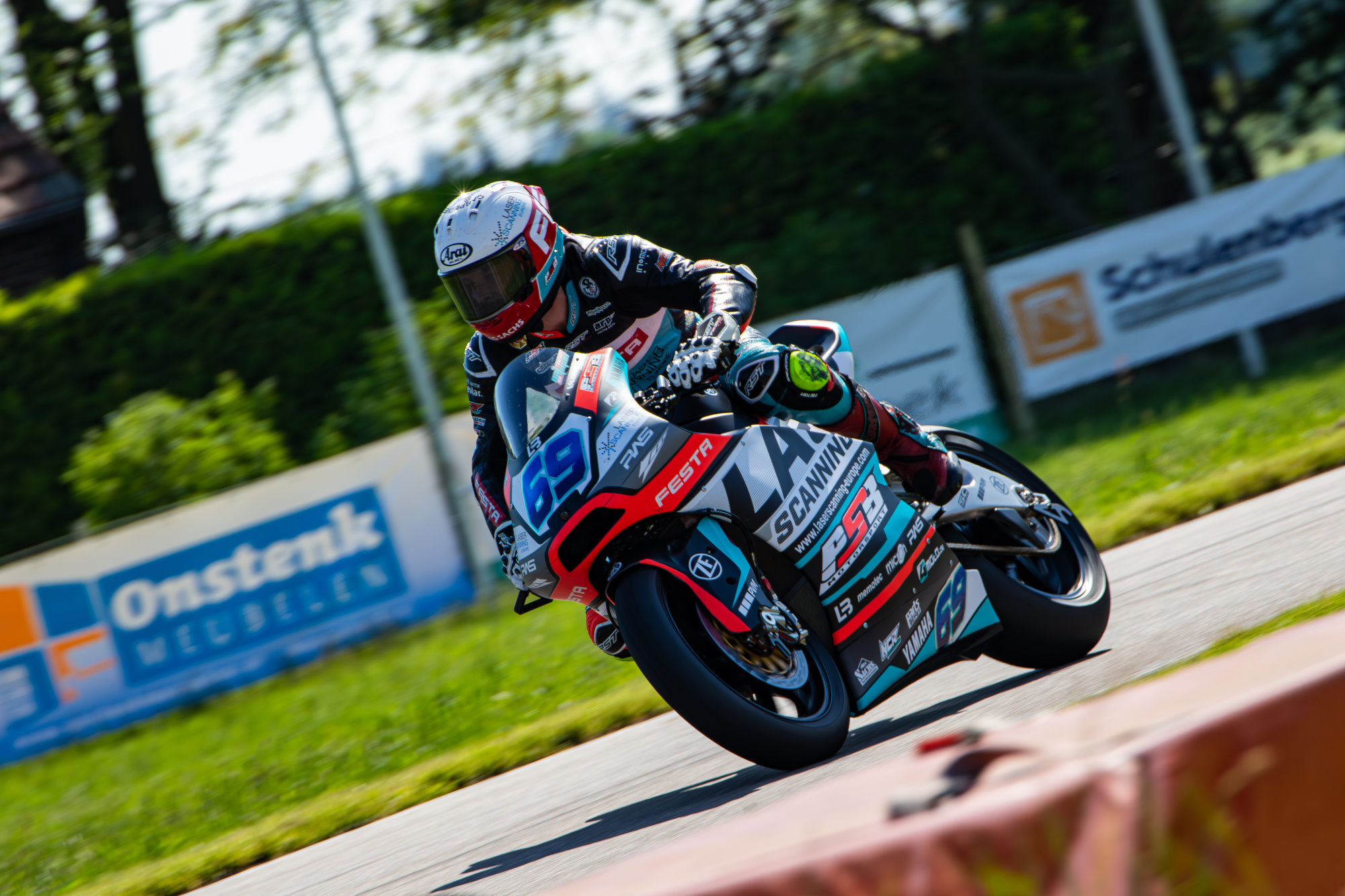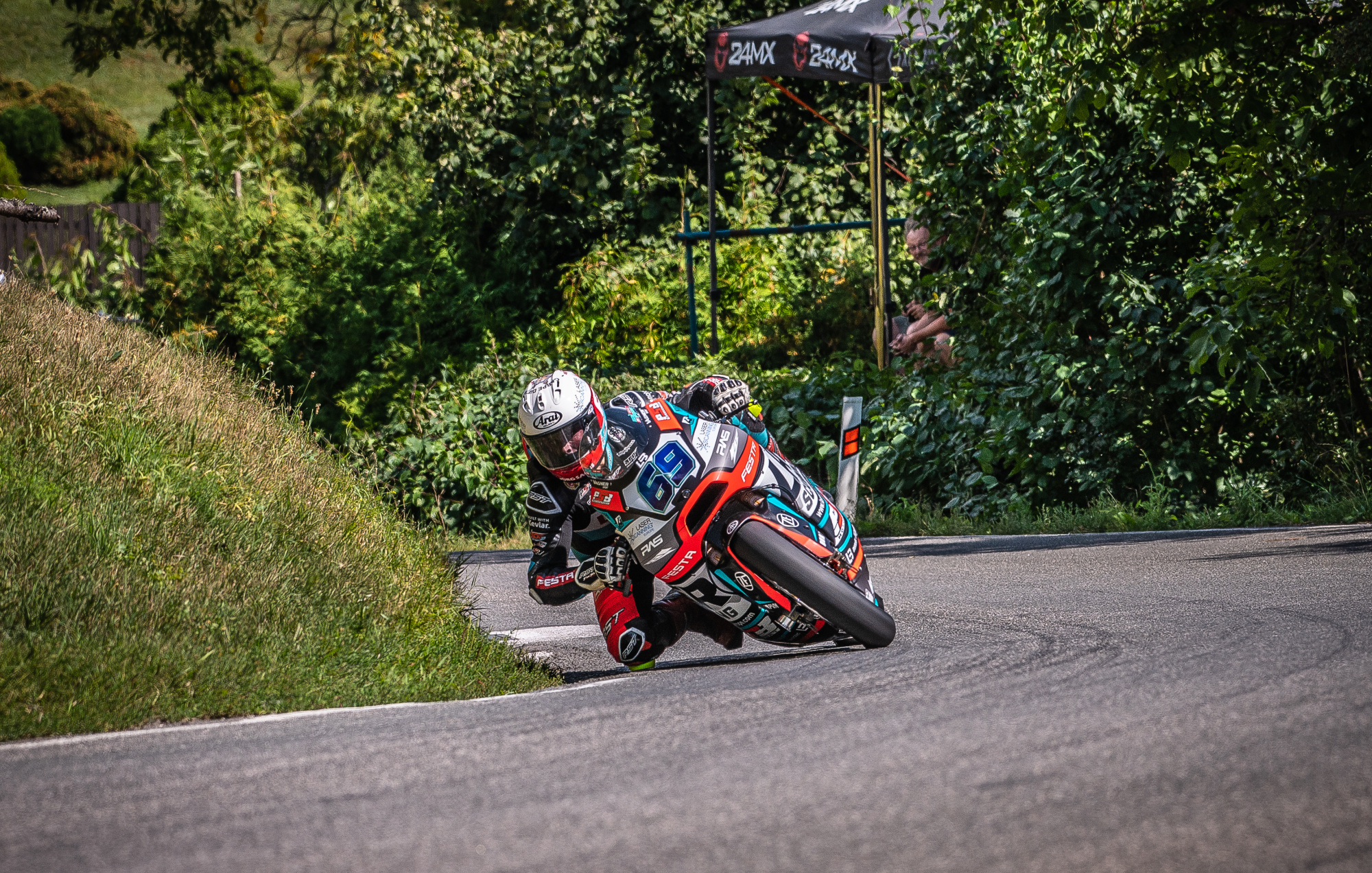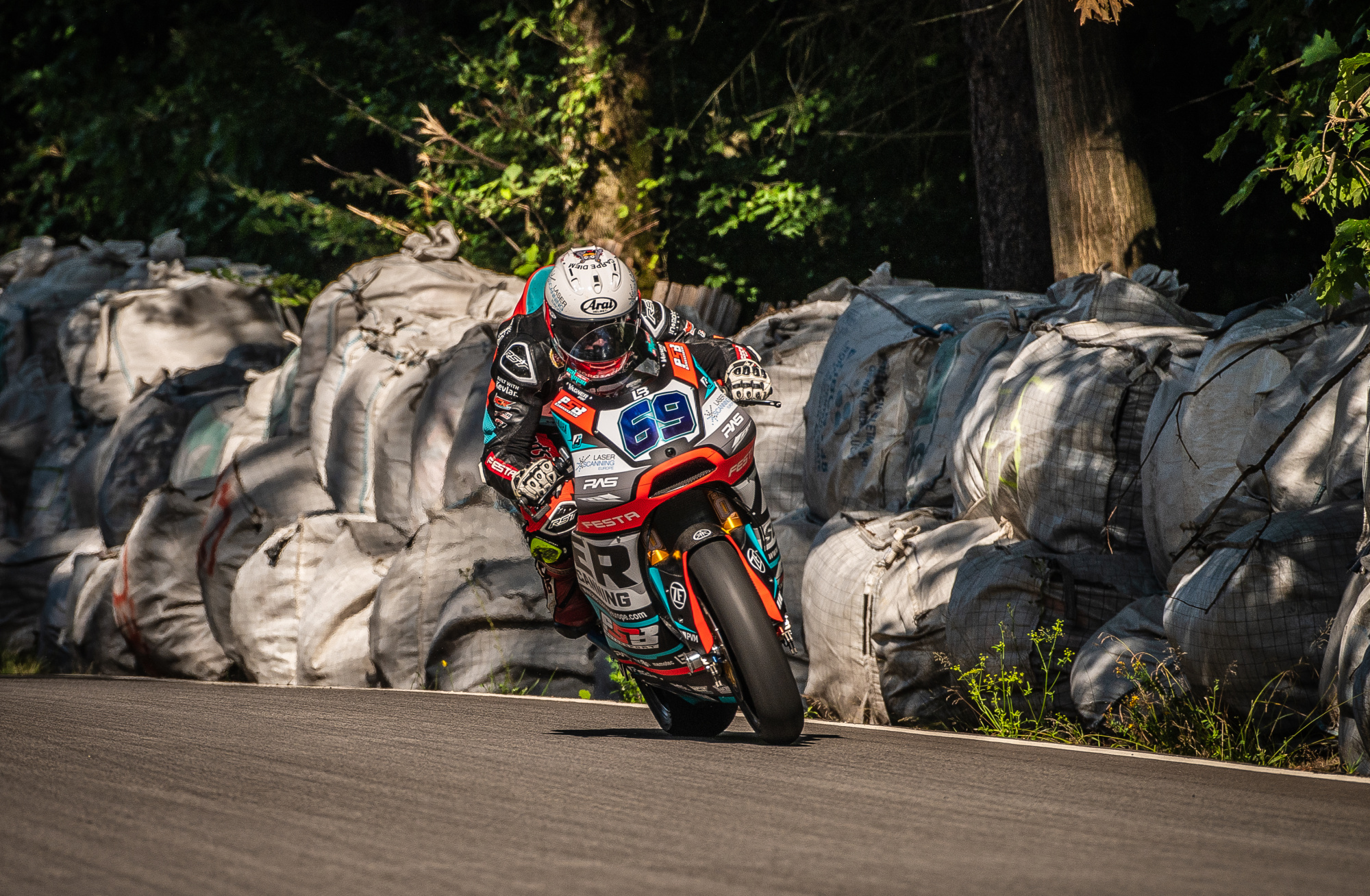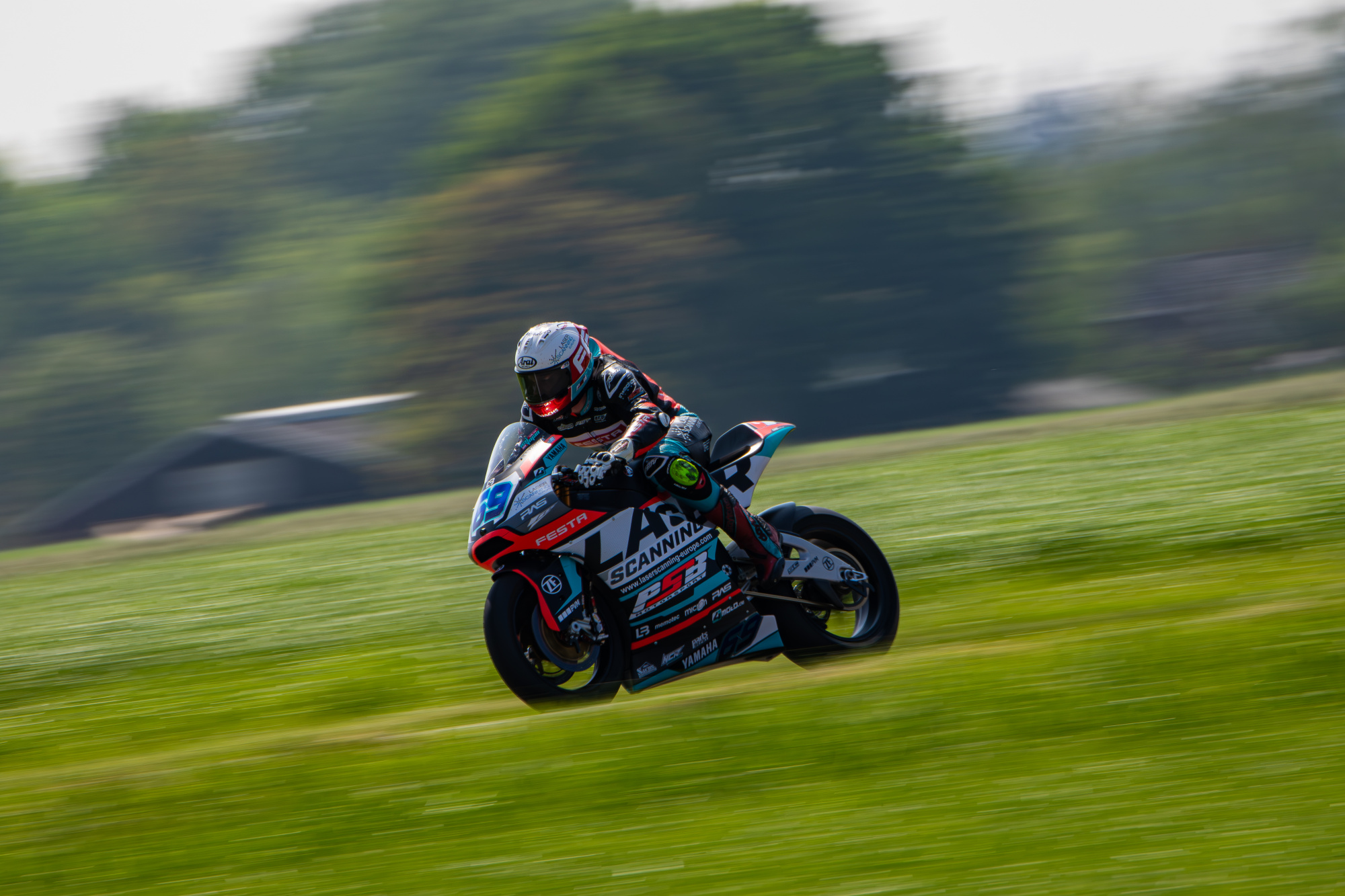 V neděli jsme se opět probudili do mokrého počasí, ale už to vypadalo, že pršet nebude. Trať byla taková půl na půl, takže jsem do prvního dopoledního závodu zvolil mokré pneumatiky. To se nakonec ukázalo jako chyba, protože trať začala během závodu rychle osychat. Start se mi moc nepodařil a ztratil jsem kontakt s prvními jezdci. Během dvou kol se mi je podařilo dotáhnout a začali jsme společně bojovat. Neustále jsme si měnili místa od prvního do třetího a jeli v rozdílu půl vteřiny. V předposledním kole jsem byl první s lehkým náskokem, ale tím, že jsem jel na mokrých pneumatikách a trať už byla přibližně ze 70% suchá, tak jsem dostal highsidera na výjezdu na cílovou rovinku. To mě hodně rozhodilo a během toho mě ostatní opět předjeli. V posledním kole se mi podařilo zpátky dostat na druhé místo a do poslední zatáčky jel bok po boku s prvním. Opět jsem ale na výjezdu dostal dalšího highsidera, vyjel z dráhy a oba mě předjeli. Závod jsem dokončil na třetím místě, což mě trochu mrzí, protože vím, že to mohlo být lepší. I tak jsem v závodě získal hodně zkušeností, protože to byly parádní souboje.